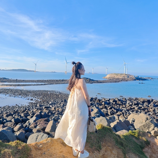 🌟亮点特色:北部生态廊道是平潭新晋网红打卡点,去过的小伙伴一定会迷上这里的蓝天碧海渔船,还有一排排高大的风车。鉴于最近天气很棒,邀上小伙伴就出发打卡平潭岛啦,第一个景点就是平潭北部生态廊道。