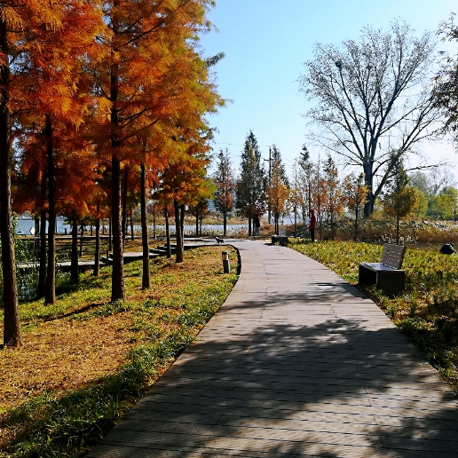 北龙湖湿地公园的叶子都黄了,天气特别好!