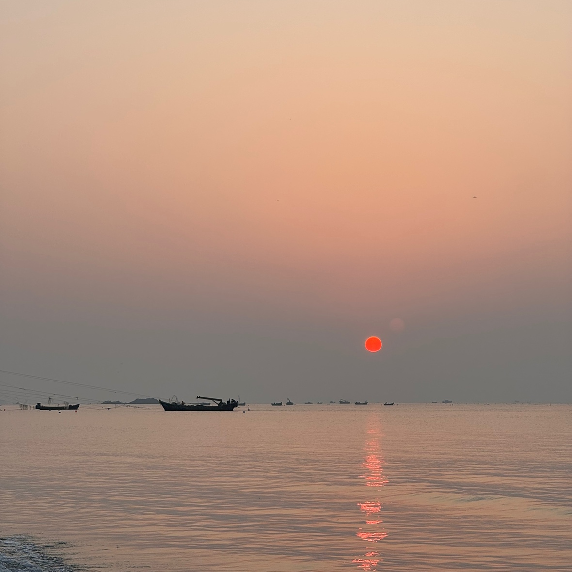 因为两边人太多,还是没办法给到一张全景,为了毕业还得再来一次!朝霞被鸽,但是天边还是有些许安慰奖,粉色小片云彩和大烧也是不一样的感觉,游船驶出让这景色更如山水画一般绝妙。