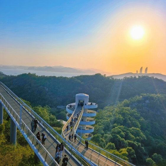 🌄吃完饭从【龙舟池】前走过到达【十里长堤】观看日落,结束充实的一天。