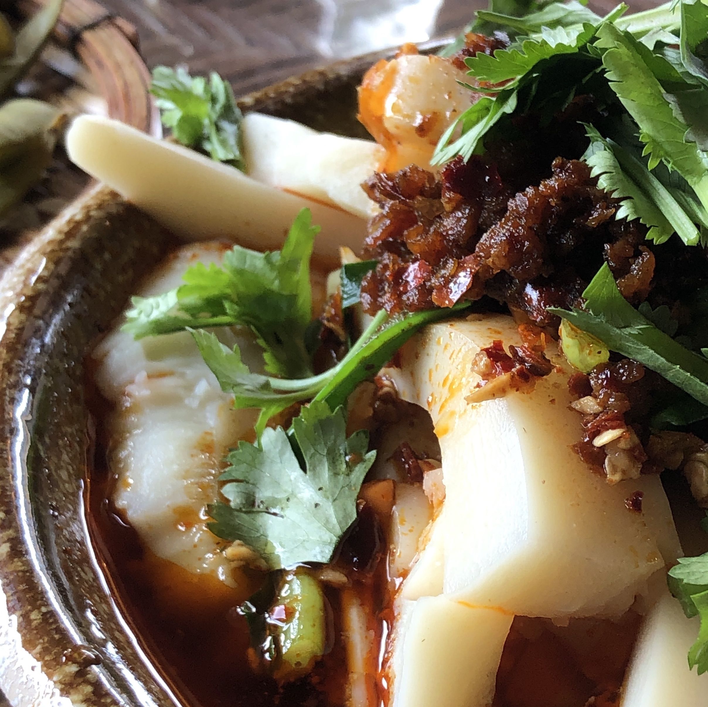 找到必吃榜鑫麻抄手尝尝,店面比想象中的小,物品堆得有些乱。1两担担面,想要不辣的,老板说不辣的没味道,直接上了辣的,和料拌匀后吃起来又辣又香,好吃是好吃,就是辣得我胃难受。1两抄手有10个,要了不辣的。鸡汤底鲜,抄手皮薄馅多,店内豪放,不提供勺子,喝汤直接端碗。店内按两点,女生各1两就够了。