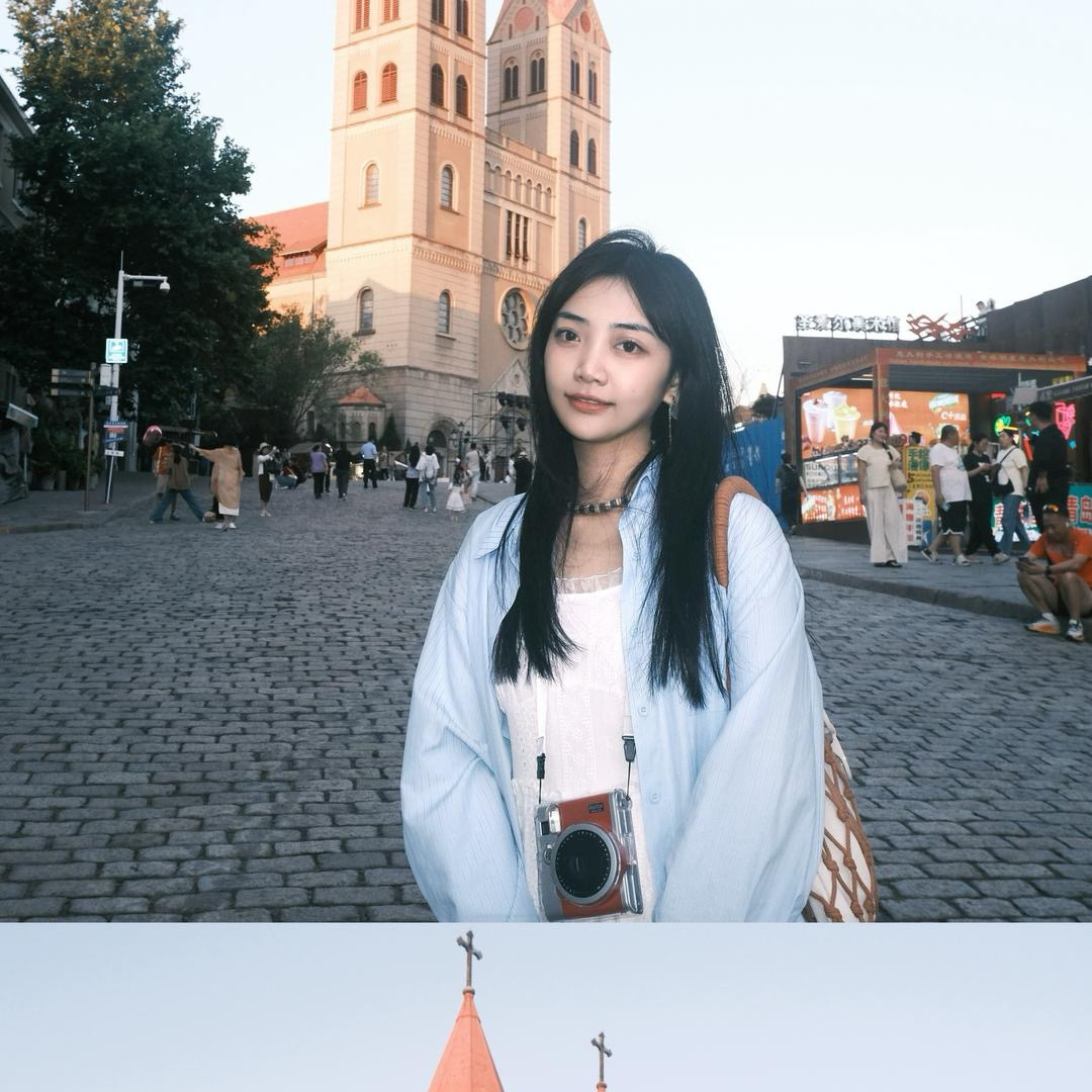 ▪️如果建筑很高,人物与建筑合影,人一定往镜头前占,避免靠近建筑站立,会显得人像很小