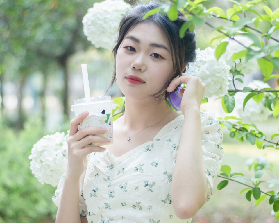 手拿饮料拍一张