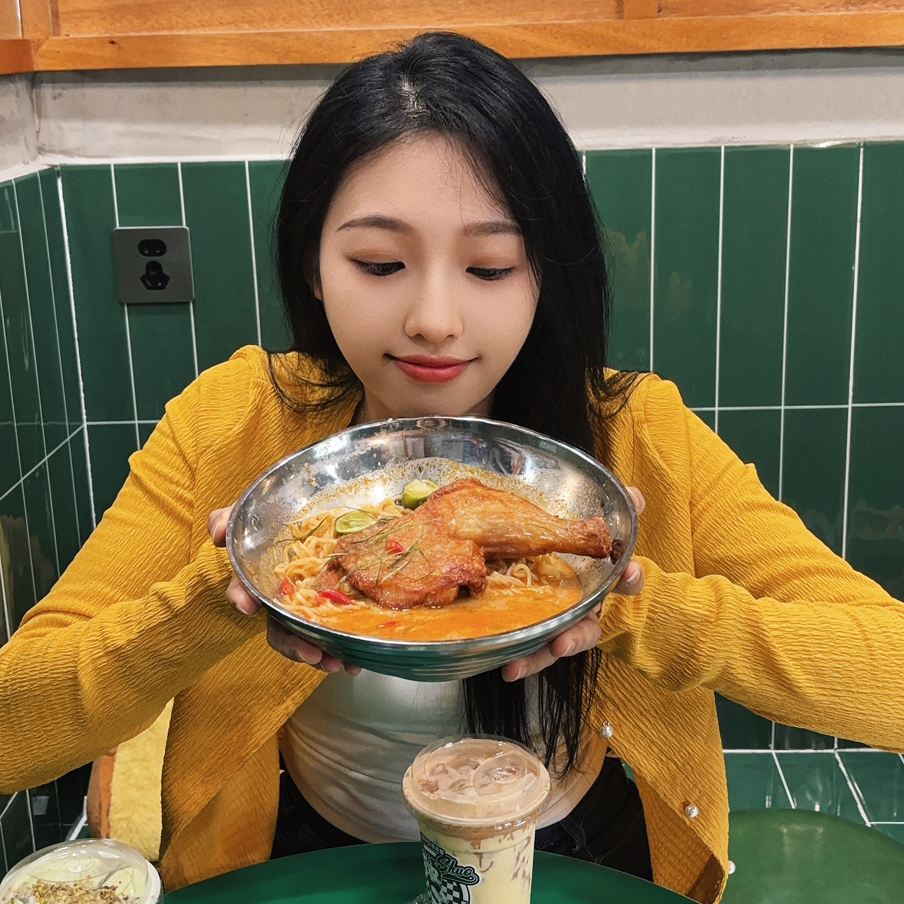 肉质外酥里嫩,汤底浓郁,一边嗦粉一边吃肉!旁边还有一些小料可以加!在这附近生活的人也太幸福了