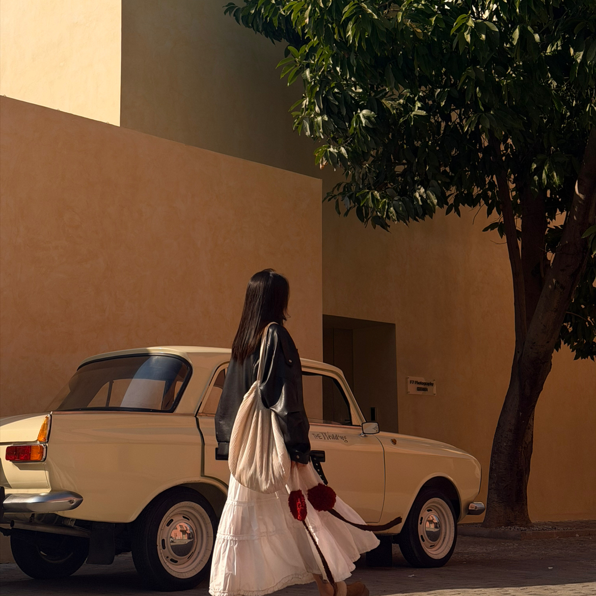 👉 利用竹叶与红墙的投影,拍出光影交错感