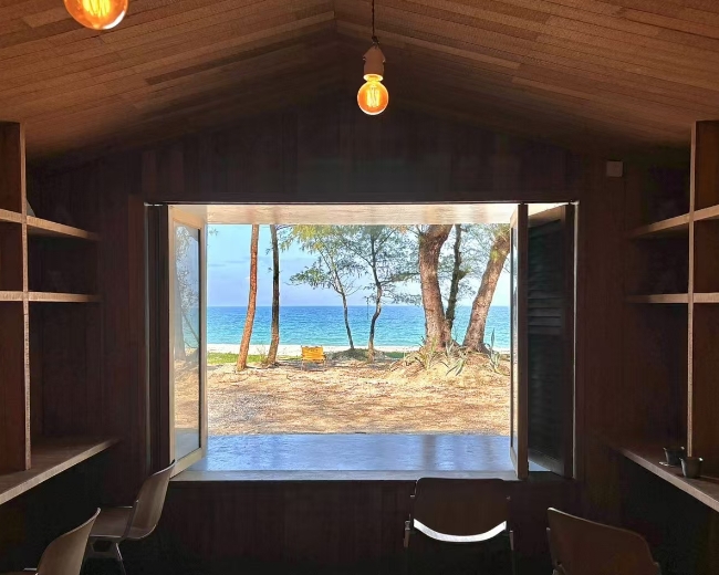 在海边🏝️,很文艺的店,环保理念很不错,点一杯咖啡,海风与书页、浪声相融,绿植长廊通沙滩(也是网红打卡机位),非常惬意~黄色坐椅、木质相框绝佳取景,黄昏落日时分醉美