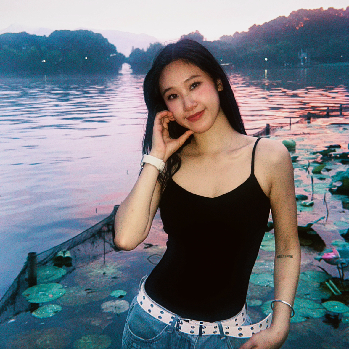 ✔️既想要拍到全景又要人显高,记得要在构图的时候腿尽量贴近下边缘~