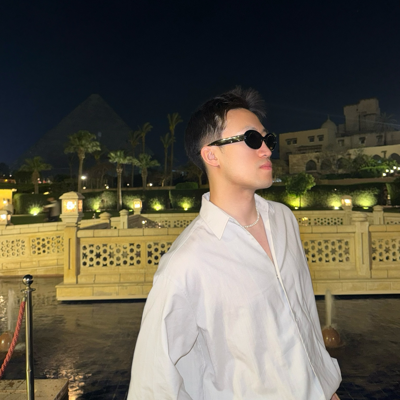 1️⃣️ 「蓝宝石泳池」:Tiffany蓝马赛克泳池+白色拱廊,仿佛穿越到南欧!白天光影交错,夜晚灯光璀璨,360度无死角出片圣地💎