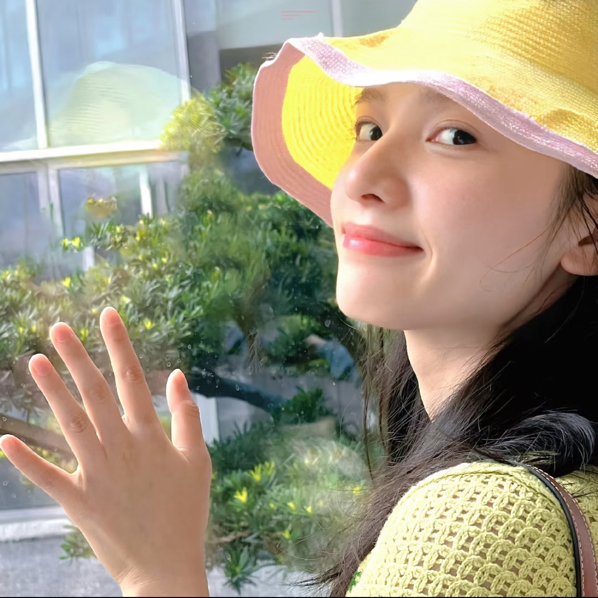 4️⃣站在粉黛里边,用粉黛做前景,侧脸摸头发,不看镜头
